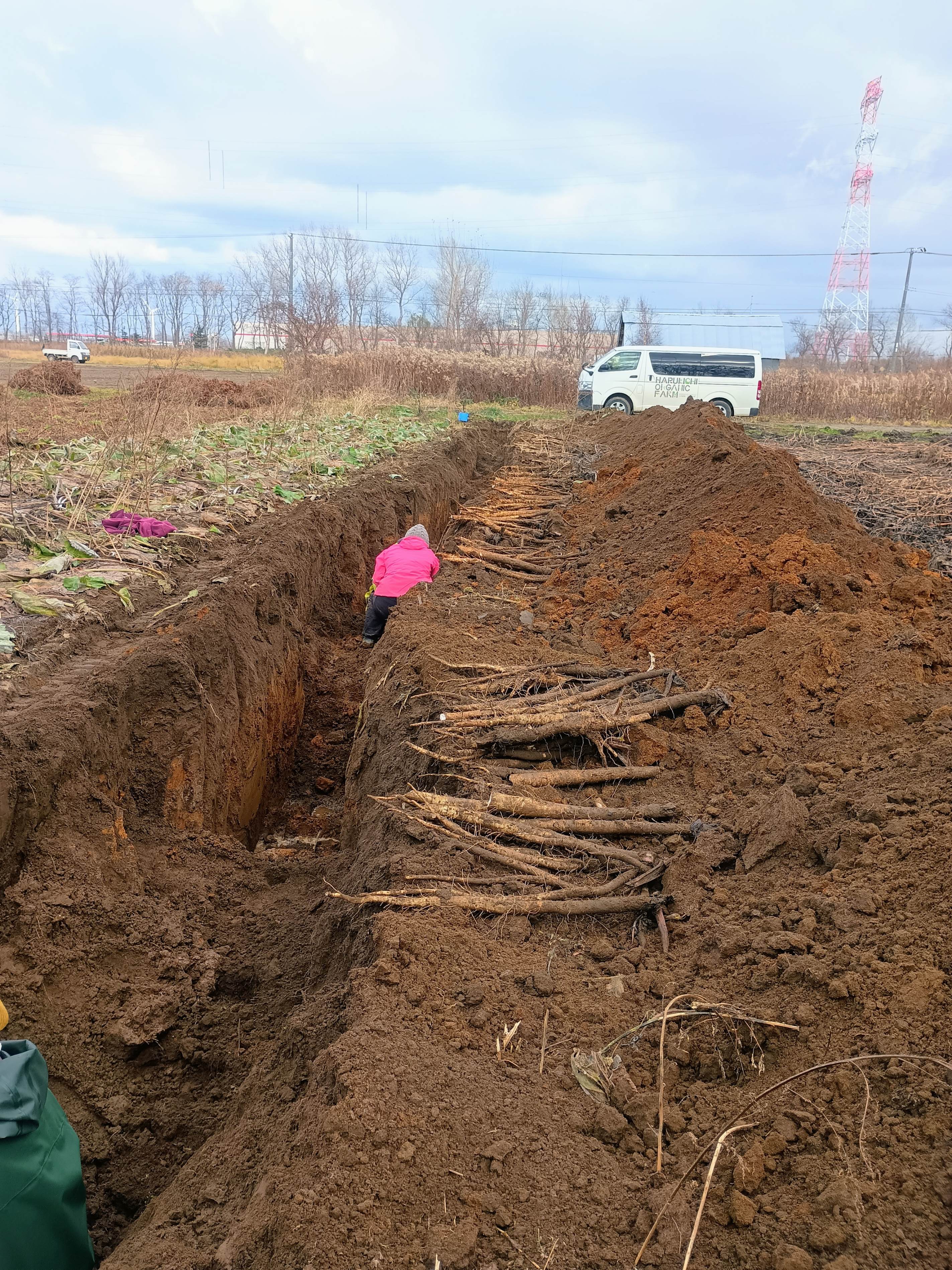 長年栽培したいと思いながら、ユンボやトレンチャーなど作業機械が準備できず始められなかった長芋とごぼう。それが今年ようやく入手できて栽培することができ、この秋収穫を迎えることができました。